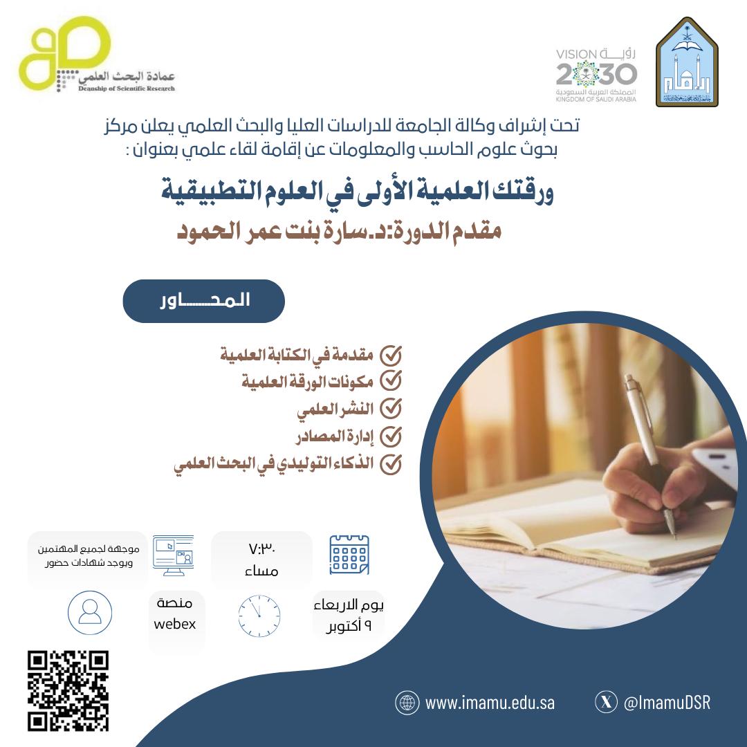 مقدمة في الكتابة العلمية مكونات الورقة العلمية النشر العلمي إدارة المصادر الذكاء التوليدي في البحث العلمي