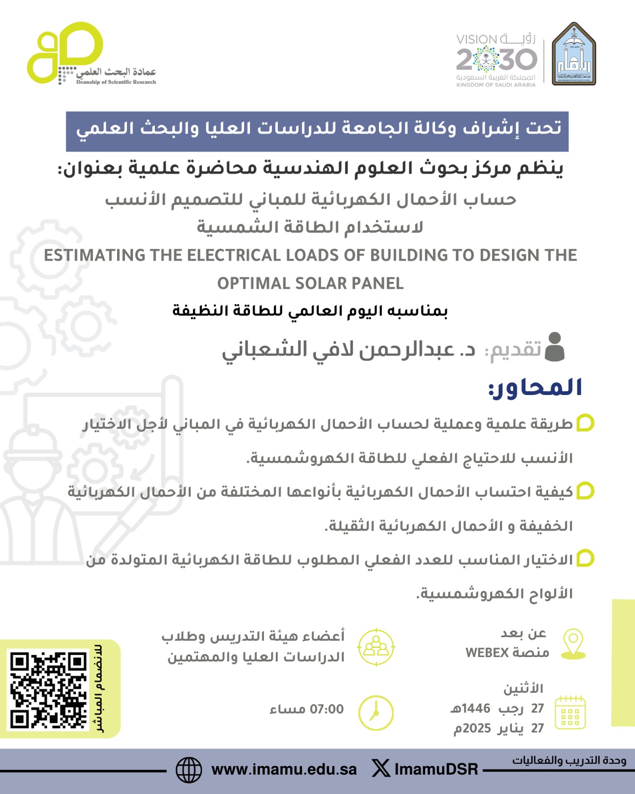 حساب الأحمال الكهربائية للمباني للتصميم الأنسب لاستخدام الطاقة الشمسية.